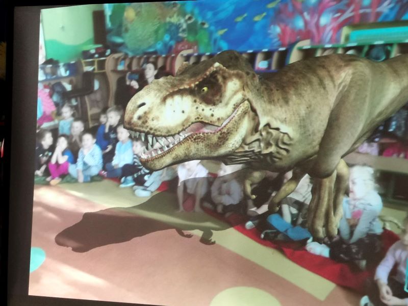 Dzieci zapoznały się z niektórymi gatunkami dinozaurów, mogły je zobaczyć wirtualnie .